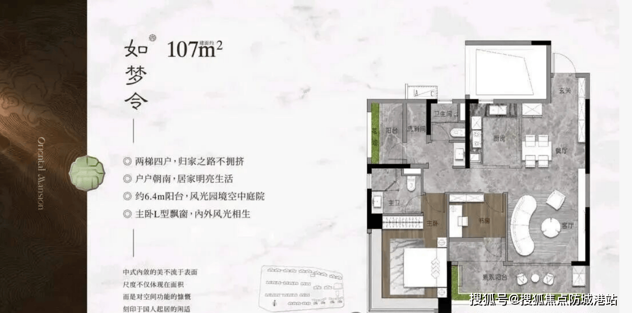 而147平方米的四房户型,则是为三代同堂家庭量身定制的改善佳品。该户型最大的亮点在于采用了两梯两户的尊享配置,专梯入户设计极大地提升了私密性和尊贵感。四开间朝南的格局,让阳光洒满每一个角落,冬日温暖,夏日通透。LDKB(客餐厨阳)一体化布局,打破了传统空间的界限,形成了一个超过40平方米的超大公共活动空间。这里可以是孩子的游乐场,可以是家人的聚会厅,也可以是朋友的社交场,满足了现代家庭多元化的生活场景。客厅面宽阔绰,连接超长景观阳台,将室外的园林美景尽收眼底。主卧套房设计,配备独立卫生间和衣帽间,保证了主人的私密与舒适。三个次卧空间宽敞,足以满足老人、孩子或客人的居住需求。书房可根据家庭需要灵活改造,增加了空间的实用性。整体户型方正,动静分区明确,互不干扰,既保证了家庭成员的独立空间,又促进了彼此的交流互动。