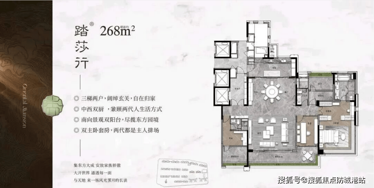 对于追求极致生活品质的终极改善人群,保利天瑞准备了188平方米和268平方米两款旗舰户型,重新定义了天河大平层的居住标准。188平方米的四房三卫户型,创新性地采用了双主套设计,满足了二代主人或多代同居的尊贵需求。近10米面宽的超大阳台,横跨客厅与次卧,仿佛一条空中走廊,将室内的生活空间与室外的园林景观无缝连接。站在阳台上,俯瞰6.8万平米的新中式园林,感受微风拂面,心旷神怡。客厅挑高设计,气势磅礴,搭配落地玻璃窗,采光极佳,视野无遮挡。餐厅与厨房相邻,方便传菜,同时也便于家人互动。三个卫生间均采用高档洁具,主卫更配备了按摩浴缸,让沐浴成为一种奢华享受。双主套的设计,让父母和主人各自拥有独立的私密空间,互不打扰,又能在公共区域共享天伦之乐,完美解决了多代同堂的居住痛点。